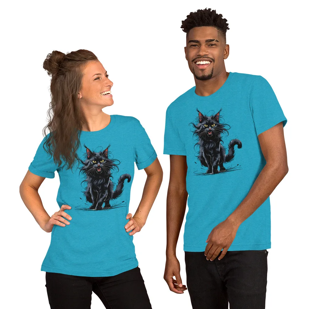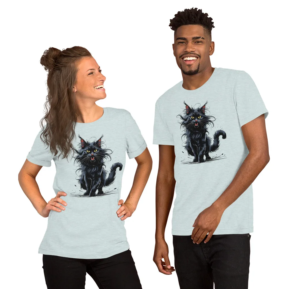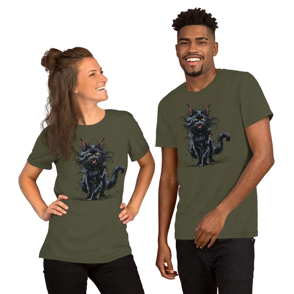 T-Shirt „schwarze Katze auf der Jagd“