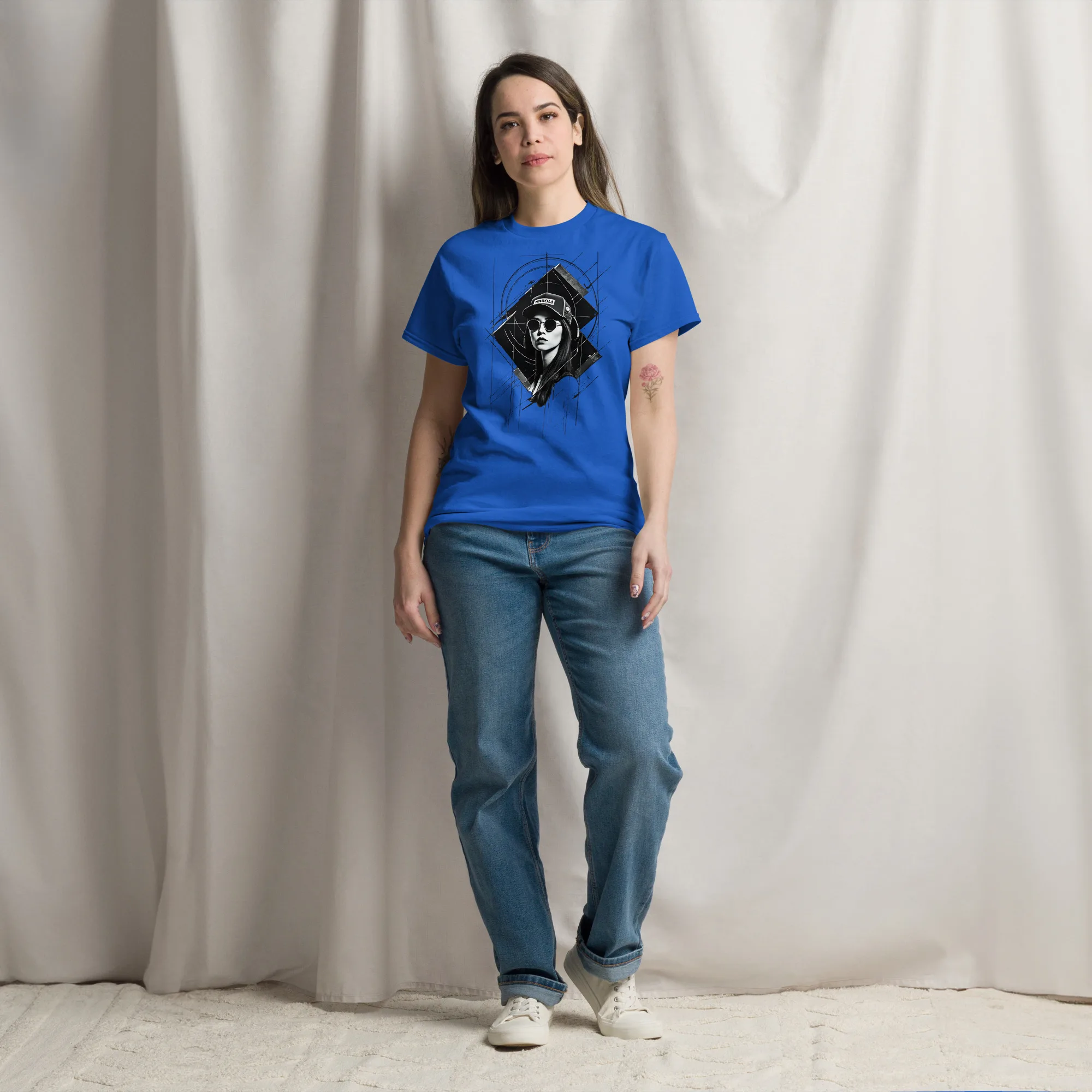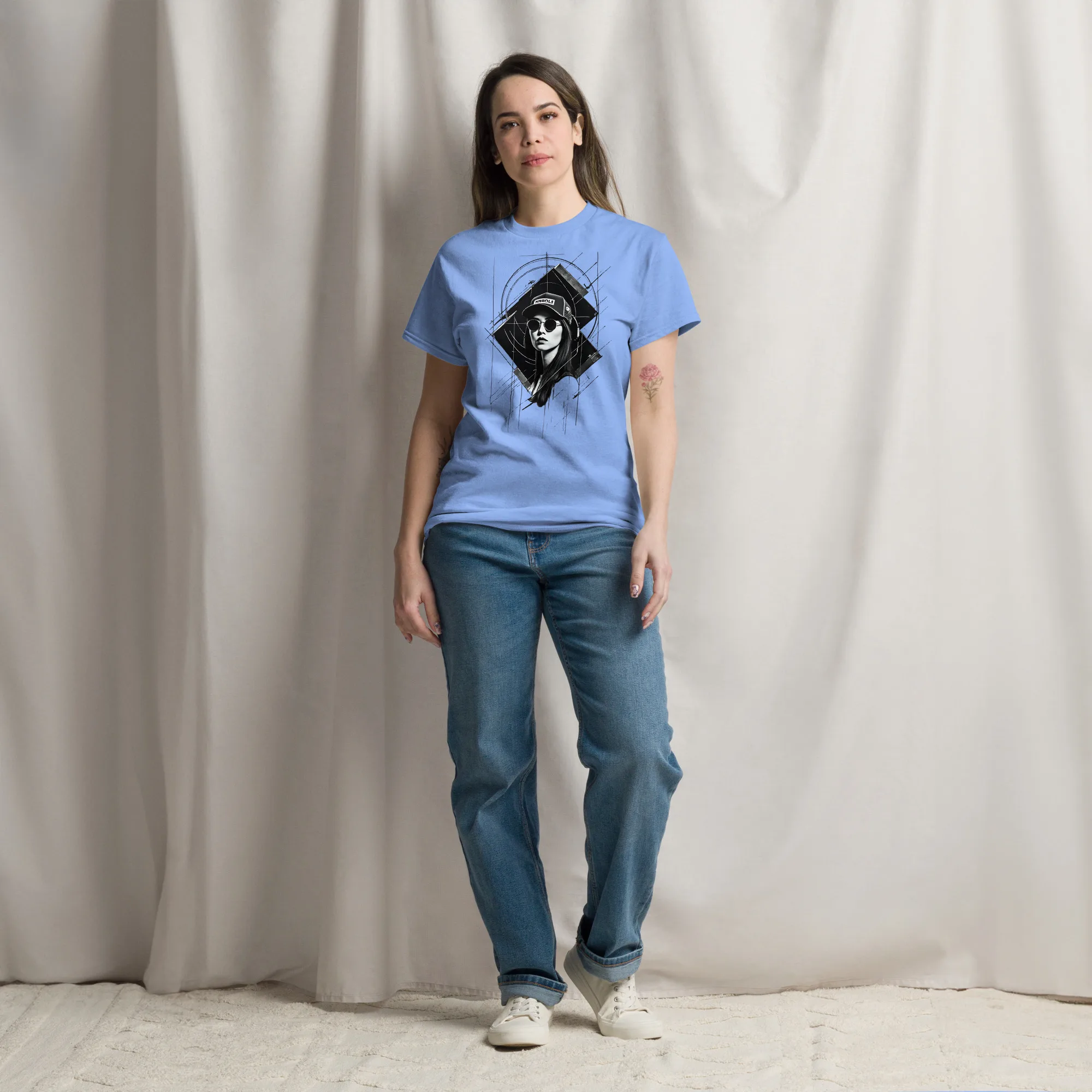 Das klassische Unisex-T-Shirt aus 100 % Baumwolle sorgt für eine gerade Linie. Es sitzt schön, behält klare Linien an den Kanten und passt perfekt zu mehrschichtigen Streetwear-Outfits. Außerdem ist es jetzt besonders im Trend!